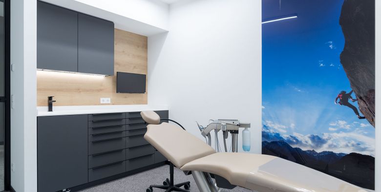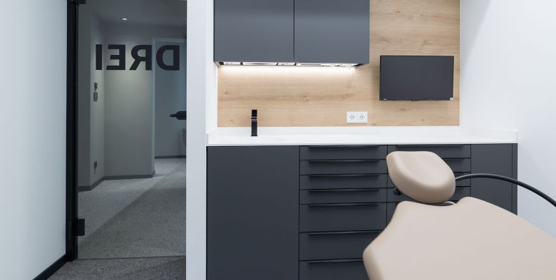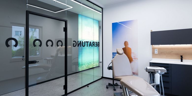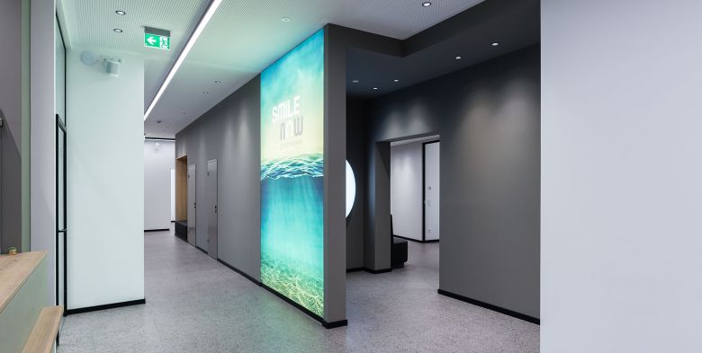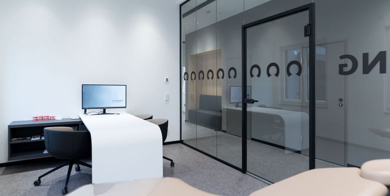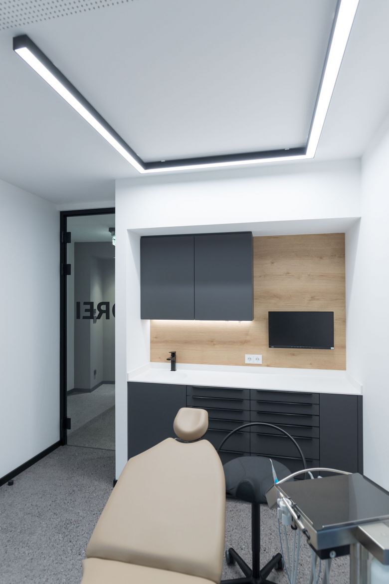 Nach aufwändiger Sanierung des gesamten Gebäudes, vollständiger Entkernung und anschliessendem Neuausbau der Praxisflächen entstand auf 360qm eine sicher aussergewöhnliche Kfo-Praxis!