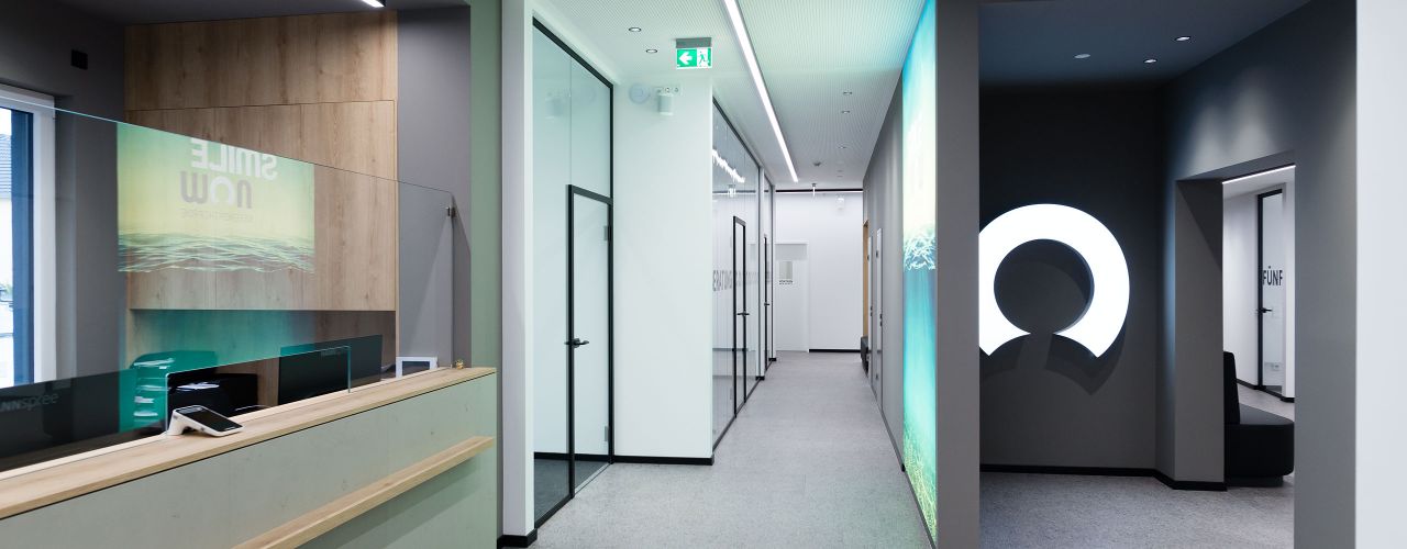 Neubau der Facharztpraxis für Kieferorthopädie SMILE NOW in Aachen. Torsten Weber und sein Team sind die Experten für ein perfektes Lächeln.