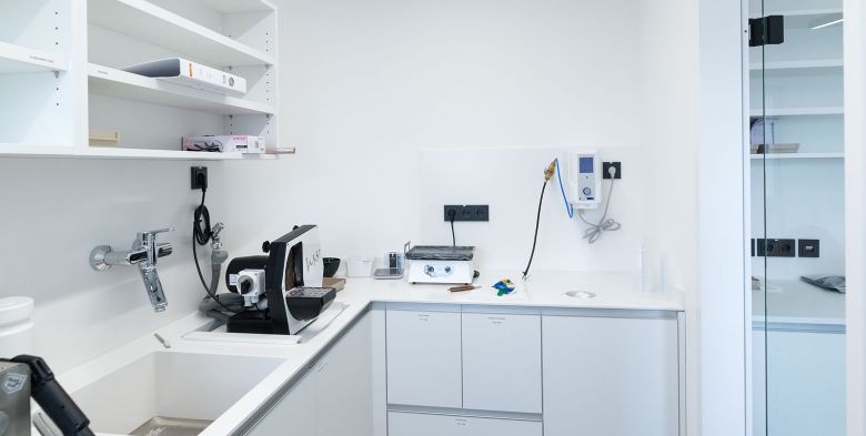 Durch Anmietung neuer Flächen im Objekt ergab sich die Gelegenheit der Erweiterung der bestehenden Zahnarztpraxis. In den neuen Flächen wurden 3 zusätzliche Behandlungsräume, ein Zahntechnik-Labor, ein Mitarbeiterbüro, sowie Empfang, Kurzwarten und Technikräume geplant und realisiert.